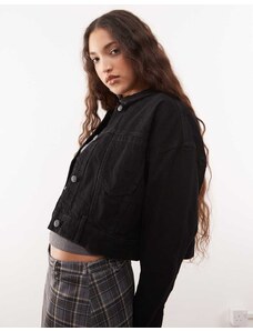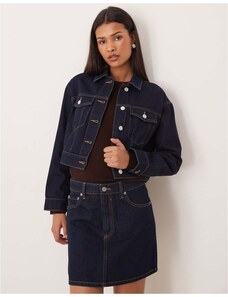 ASOS DESIGN crop denim jacket in rinse-Navy