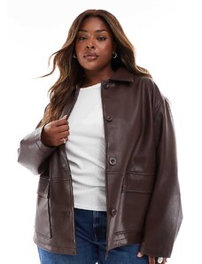 ASOS Curve ASOS DESIGN Curve leather look harrington jacket in chocolate-Brown