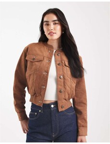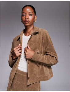 Kaiia exclusive button front pocket detail faux suede jacket co-ord in brown in tan