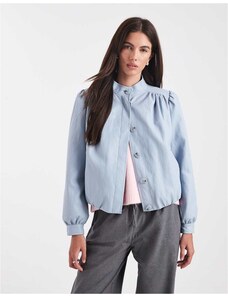 Miss Selfridge faux leather gathered detail jacket in soft blue