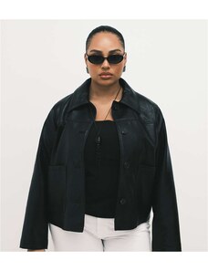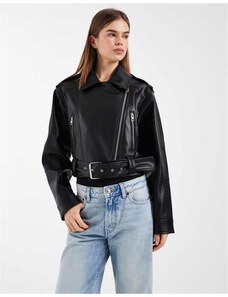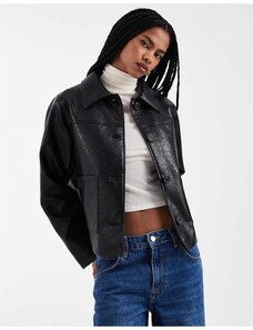 ASOS Curve ASOS DESIGN Curve leather look harrington jacket in black