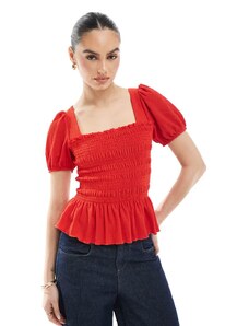 New Look shirred bodice puff sleeve top in red