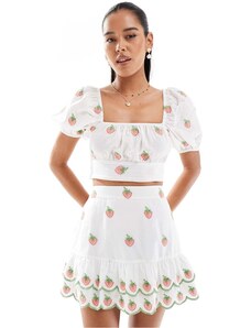 New Look co-ord strawberry embroidered crop top in white
