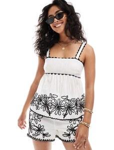 New Look co-ord embroidered hem cami top in white