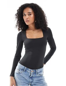 New Look long sleeve square neck bodysuit in black