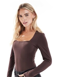 New Look long sleeve square neck bodysuit in brown