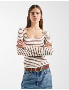 New Look stripe button down long sleeve top in brown