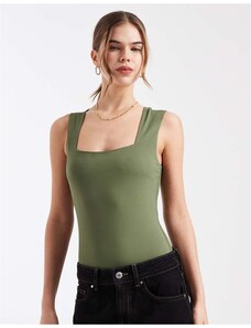 New Look square neck bodysuit in khaki-Green