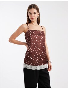 New Look polka dot square neck lace cami top in brown