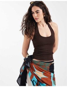 New Look halter neck vest in dark brown
