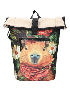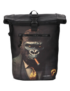 Trendy rolovací batoh holandské značky New Rebels. Představujeme Vám trendy batoh holandské značky New Rebels, která je vyhlášená díky velmi kvalitnímu zpracování a používáním kvalitních materiálů. Hlavní kapsa se uzavírá za pomoci zipu a plastové přezky. Uvnitř této kapsy najdete polstrovanou přihrádku na notebook (36x27 cm), která odpovídá 15,6 palcovému notebooku. Dále uvnitř najdete praktickou menší kapsičku na zip. Poslední kapsu na zip najdete na přední straně batohu. Zadní strana batohu je vyztužená a vyztužené jsou i popruhy přes rameno. Batoh je vyroben z voděodpudivého PU/polyuretanového materiálu, takže batoh je voděodolný. Proto bude tento batoh ideálním společníkem při lyžování, cestování a nebo jízdě na kole.