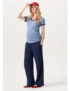 Noppies Ležérní těhotenské kalhoty s řaseným lemem -modré Naval Academy, bavlna