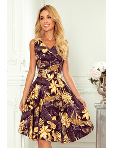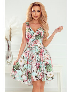 Numoco MAYA Šaty s delšími zády, výstřihem a páskem - růžové květy 478-1