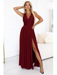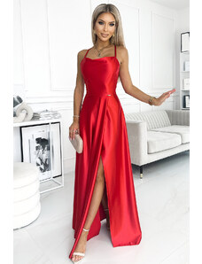 Numoco PERLA saténové dlouhé šaty s výstřihem na zádech - červené 419-1