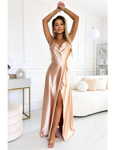 Numoco PERLA saténové dlouhé šaty s exkluzivním výstřihem na zádech - zlaté 547-1