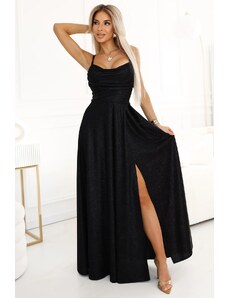 Numoco 589-1 Dlouhé šaty s jemným třpytem a korzetovým zavazováním na zádech - ČERNÉ se třpytkami
