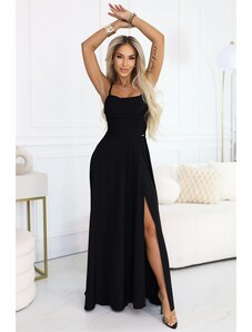 Numoco Maxi šaty s ramínky, korzetem na zádech a rozparkem - černé 589-5