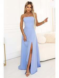 Numoco ELARA korzetové dlouhé šaty s rozparkem a vázáním na zádech světle modré Světle modrá