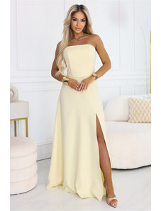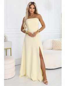 Numoco 663-3 ELARA korzetové maxi šaty s rozparkem a zavazováním na zádech - máslově žluté