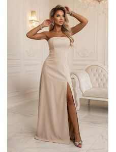 Numoco 663-1 ELARA korzetové maxi šaty s rozparkem a zavazováním na zádech - béžové