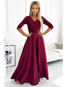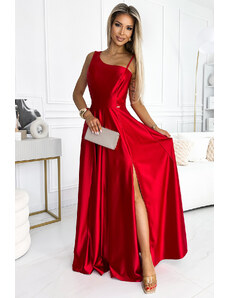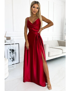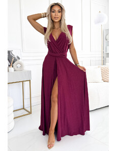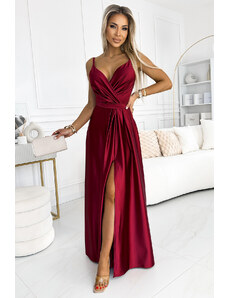 Chiara - elegantní maxi dlouhé lesklé šaty na ramínka. Krásně tvarovaný výstřih a rozparek na sukni vytvářejí neobvyklou kompozici. Vyrobeno ze třpytivého, pružného fuchsiového materiálu. Šaty ideální na svatby, Silvestra, ples, karneval a další významné příležitosti. Polská výroba. Značka Numoco.