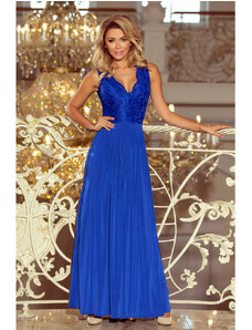 Amber jsou elegantní dlouhé krajkové maxi šaty značky Numoco, které přitahují pozornost svým jedinečným tvarovaným výstřihem a jemným rozparkem na sukni. Vyrobeno v krásném chrpově modrém odstínu. Vytvoří stylový a smyslný outfit pro zvláštní příležitosti. Polský výrobek , který zaujme svou kvalitou a smyslem pro detail.