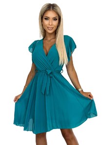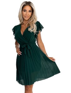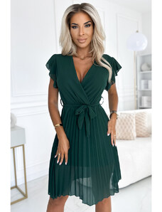 Numoco LILA - Plisované dámské šaty v lahvově zelené barvě s krátkými rukávy 311-3