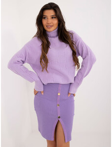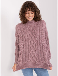 ITALY MODA Fialový copánkový svetr s rolákem --fioletowy Fialová