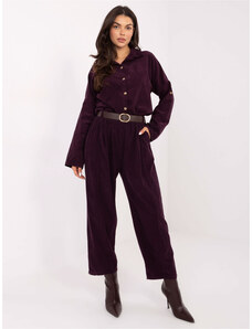 ITALY MODA Fialové dámské společenské kalhoty s kapsami a páskem -violet Fialová