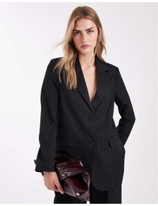 ONLY single breasted oversized blazer co-ord in black pinstripes