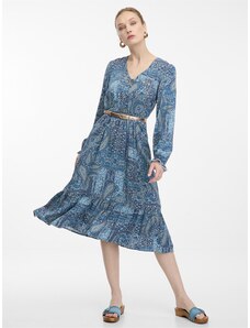 Orsay Modré dámské vzorovanémidišaty - Dámské