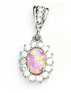 Čištín s.r.o. Stříbrný přívěsek, růžový syntetický opál, přívěsek s opálem, P 1453
