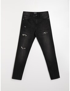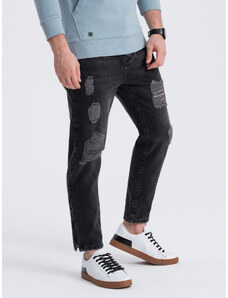Dstreet Černé roztrhané kalhoty s ozdobným zipem