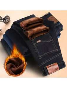 Best Fashion Zimní pánské džínové kalhoty s flísem a rovným střihem
