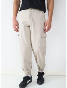 KnowledgeCotton Apparel Kalhoty se sklady v pase béžová