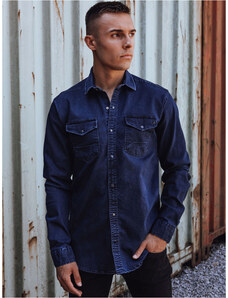BASIC Pánská tmavě modrá džínová košile Denim vzor