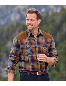 Kostkovaná flanelová košile s ramenními vsadkami z imitace semiše Atlas For Men Kostkovaná
