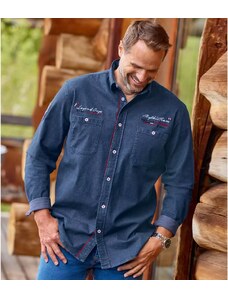 Košile ze strečového denimu s výšivkami Atlas For Men Modrá