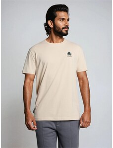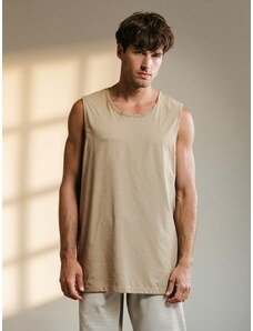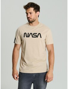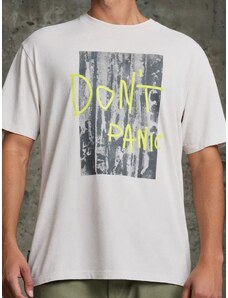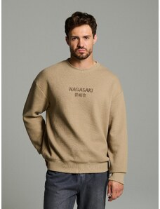 Sinsay - Bavlněné oversize tričko s potiskem - béžová