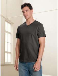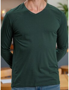 Sinsay - Tričko basic s výstřihem do V - tmavě zelená