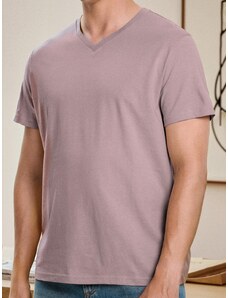 Sinsay - Tričko basic s výstřihem do V - pastelová růžová