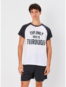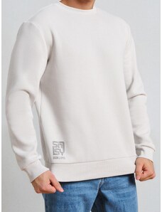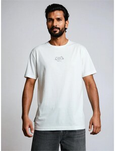 Sinsay - Bavlněné oversize tričko s potiskem - krémová