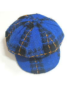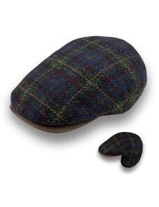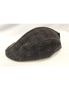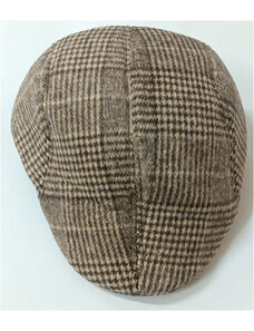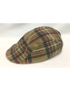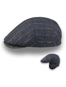 KRUMLOVANKA Pánská vlněná zimní bekovka kostka- tartan modro- hnědá (skryté klapky na uši) Ho-051