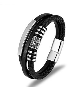 Pánský kožený vícevrstvý náramek Kelt Černý 21 cm Impress Jewelry 2208011437293344