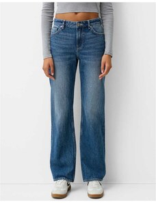 Bonprix Džíny Loose Straight Mid Waist, Full Length modrá Žena