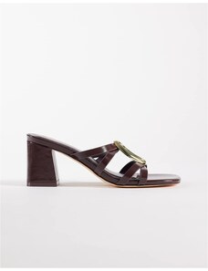New Look PU gold trim mules in dark brown