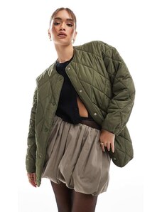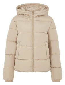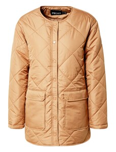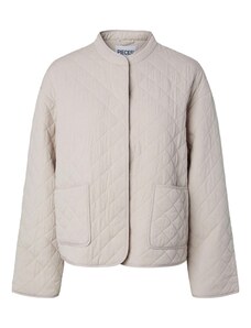 Pieces short quilted jacket with collar in beige with contrast binding-Neutral