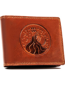 Peterson Hnědá kožená peněženka s vyraženým znamením zvěrokruhu - vodnář W108