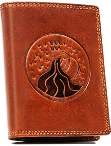 Peterson Hnědá kožená peněženka s vyraženým znamením zvěrokruhu - vodnář W125