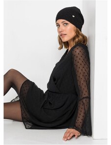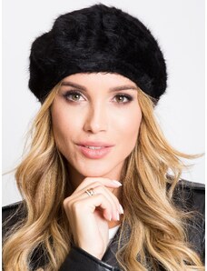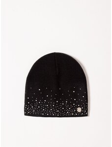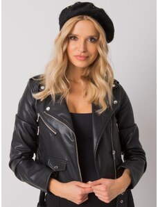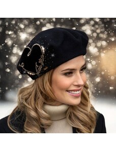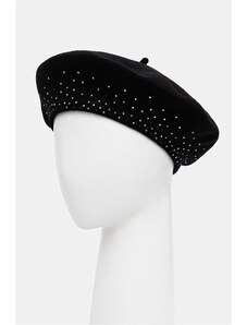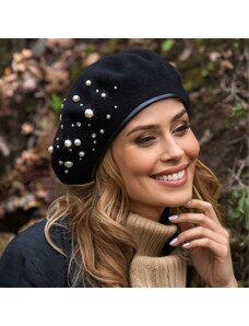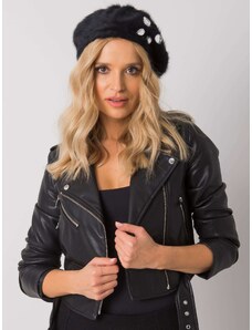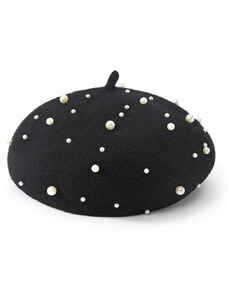 BASIC Černý baret s kamínkovým zdobením -black Černá